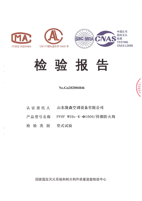 • 排煙防火閥-檢驗報告